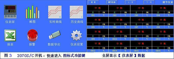 2、數據采集:系統(tǒng)從下位儀表采集測量值、設備狀態(tài)值等實時數據,并存入系統(tǒng)內部數據庫,以便日后數據查詢等使用。