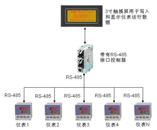 可編程控制器允許在一個RS-485通信接口上連接多達101臺[宇電]儀表,儀表大于60臺時,需加一個RS-485中繼器,RS-485通信口通信距離長達1KM以上。