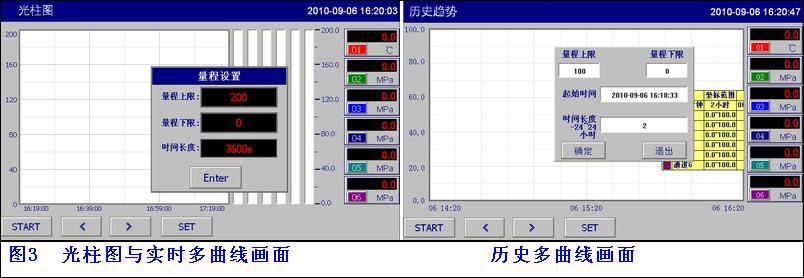 在顯示屏上模擬開關、按鈕、指示燈動畫、趨勢曲線、調節(jié)棒圖等。具有操作控制、狀態(tài)監(jiān)控、數據存儲、報表打印、無紙記錄儀通過網絡RS485通訊與計算機組建監(jiān)控系統,每通道數據刷新時間50毫秒;