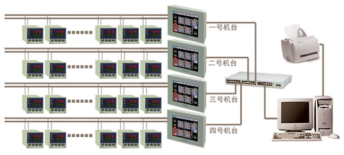 翔鷺滌綸紡纖HDT-3T機臺現場總線型溫控系統采用AIBUS現場總線型總體設計,以AI-2000工業(yè)級觸摸屏電腦作為上位機,多臺AI調節(jié)器通過AIBUS通訊協議現場聯接,觸摸屏電腦直接與AI調節(jié)器通過RS-485串行通訊實現90個通道溫度集中監(jiān)控。AI調節(jié)器上的所有參數可以在觸摸屏中顯示,也可用觸摸屏電腦設定下載,數據顯示刷新率高,便于實時監(jiān)控,溫度控制在±0.1℃。本系統同時監(jiān)控四條拉絲生產線。