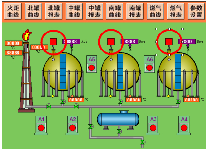 某油田貯藏罐使用一臺(tái)AI-301M輸入模塊和觸摸屏電腦CE系統(tǒng)采集貯藏罐高高液位報(bào)警的開關(guān)量在監(jiān)控軟件上顯示。