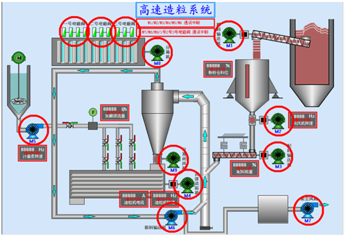 在某高速造粒監(jiān)控系統(tǒng)中使用了2臺(tái)AI-301ME5I5I5I5I5I5S來(lái)采集顯示12個(gè)開關(guān)量輸入點(diǎn),主要是各種風(fēng)機(jī)和電磁閥的狀態(tài)。